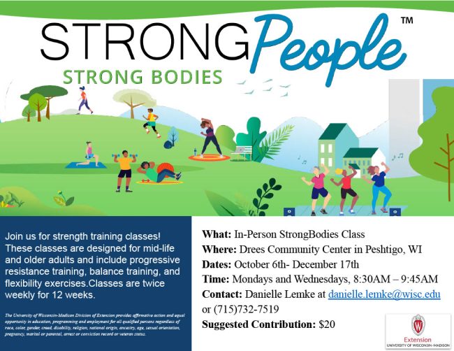 - Strong Bodies Program: We offer a moderate-intensity exercise program for middle age and older adults, including strength and balance training designed to improve muscle strength, dynamic balance, and flexibility. For additional information, visit the Strong